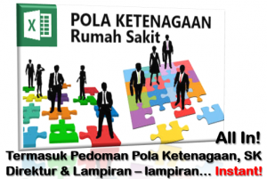 POLA KETENAGAAN RS khusus dirancang untuk memudahkan praktisi HRD khususnya Rumah Sakit dalam menyusun perencanaan SDM disesuaikan dengan kebutuhan Akreditasi Rumah Sakit KARS / JCI. Berupa file Aplikasi Microsoft Excel memakai formula agar memudahkan para praktisi HRD dalam membuat Pola Ketenagaan Rumah Sakit dan menyusun Perencanaan SDM di Rumah Sakit. Dapat langsung dipakai secara instan ataupun dimodifikasi sesuai kebutuhan.